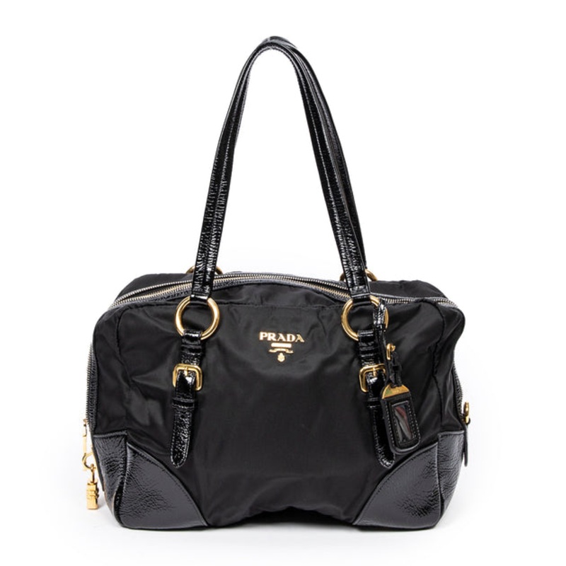 Prada Shoulder Bag in Black Nylon Canvas and Gold hardware. Dimensions – 34*20*13cm. Serial number – None. Inclusions – Luggage tag, Cadenas (Code – 00).