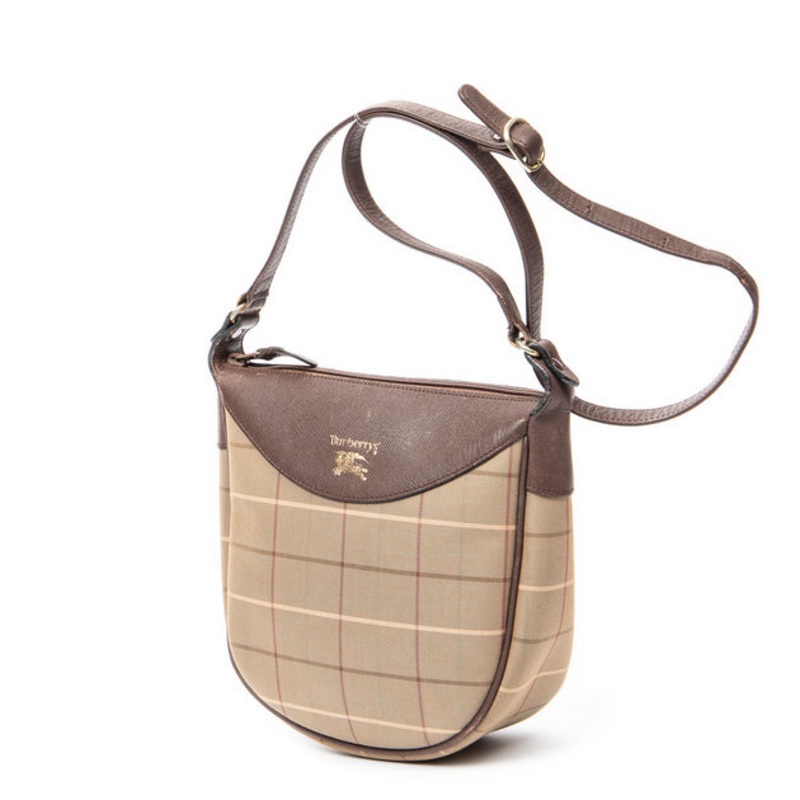 Burberry Shoulder Bag in Khaki Green/Brown Vintage Check Canvas and Gold hardware. Dimensions - 20*21*7cm. Serial number - None. Inclusions - None.