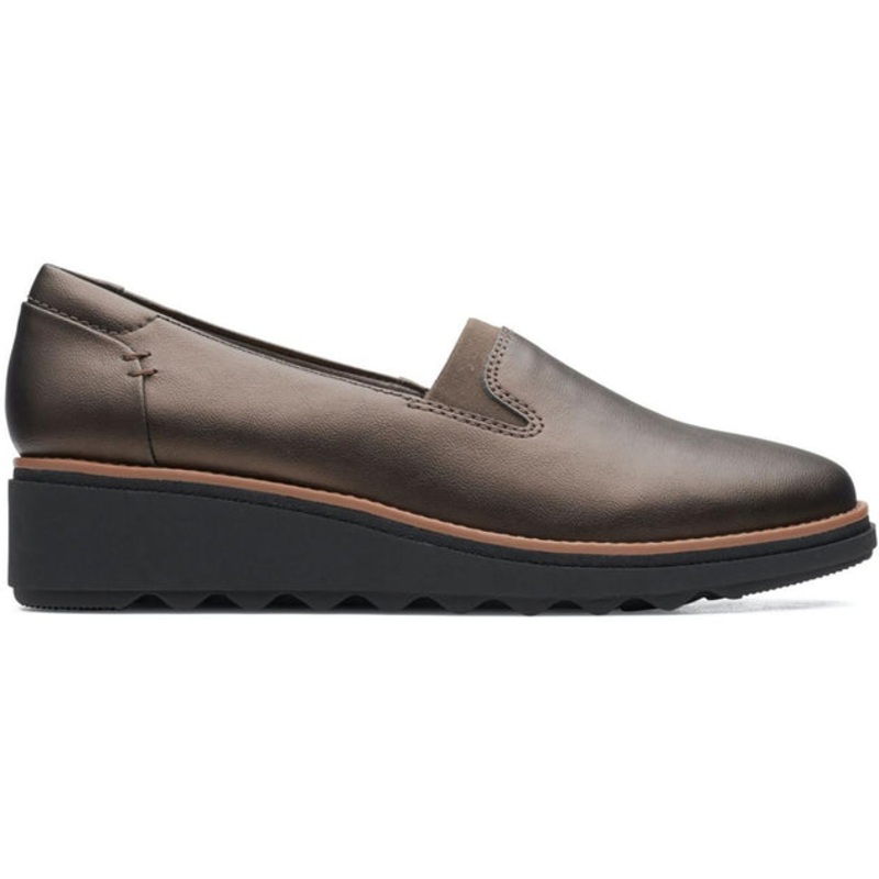 Stay casual and stylish with the Sharon Dolly loafer by Clarks. This shoe is made of leather, patent, or suede uppers with a slip on design and elastic gore inset. It features lightweight EVA & Ortholite footbed for long wear comfort. As well as Man-made outsoles with a 1.75″ wedge heel.