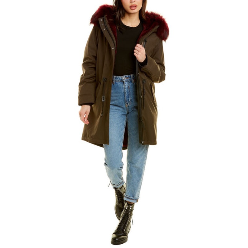 Introducing the Mackage Down Sleeve Parka, the perfect addition to your outerwear collection. From the renowned brand Mackage, known for its elevated outerwear and unique functionality, this parka combines style and practicality in one.The Mackage Down Sleeve Parka comes in the captivating Verde Militare & Bordeaux color/pattern, making it a standout piece for any winter ensemble. With a length of approximately 37.5 inches from shoulder to hem, this parka offers a flattering fit that accentuates your silhouette.Designed with exquisite details, this parka features a hooded back with luxurious fur trim, adding a touch of elegance to your look. The drawstring at the waist allows for a customizable fit, while the four front pockets provide ample storage space. The leather trim and rib-knit inner cuffs showcase the impeccable craftsmanship of this garment.For easy wearability, the Mackage Down Sleeve Parka boasts a zipper and snap closure. Its heavyweight construction ensures warmth and protection from the elements. The shell is made of a durable blend of 70% polyester and 30% rayon, while the body lining is 100% polyester. The sleeves are filled with 90% duck down and 10% feathers, providing superior insulation. The rib is crafted from a combination of 45% wool, 45% acrylic, and 10% spandex, ensuring both comfort and flexibility.To maintain the pristine condition of this parka, it is recommended to clean it with a leather and fur expert. The Mackage Down Sleeve Parka is imported, reflecting its high-quality craftsmanship. The fur trim is made from natural fox sourced from China, while the fur lining is made from natural rabbit, also from China. This parka is adorned with the RN# – 125159, adding an authentic touch to its design.When it comes to women’s outerwear, Mackage is a brand that excels in both style and functionality. Elevate your winter wardrobe with the Mackage Down Sleeve Parka and experience the perfect fusion of fashion and warmth.