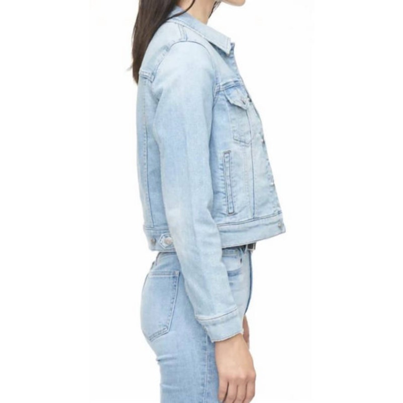 Classic, cool and works with almost any outfit choice.The Saba is a fitted cropped denim jacket with handy pockets. Size up for a more relaxed, oversized look. This style comes in a clean, light wash denim. 94% Cotton / 5% Polyester / 1% Elastane Length – 21 3/4″ Chest – 38 1/2″ True to size Model is 5’9 wearing Small
